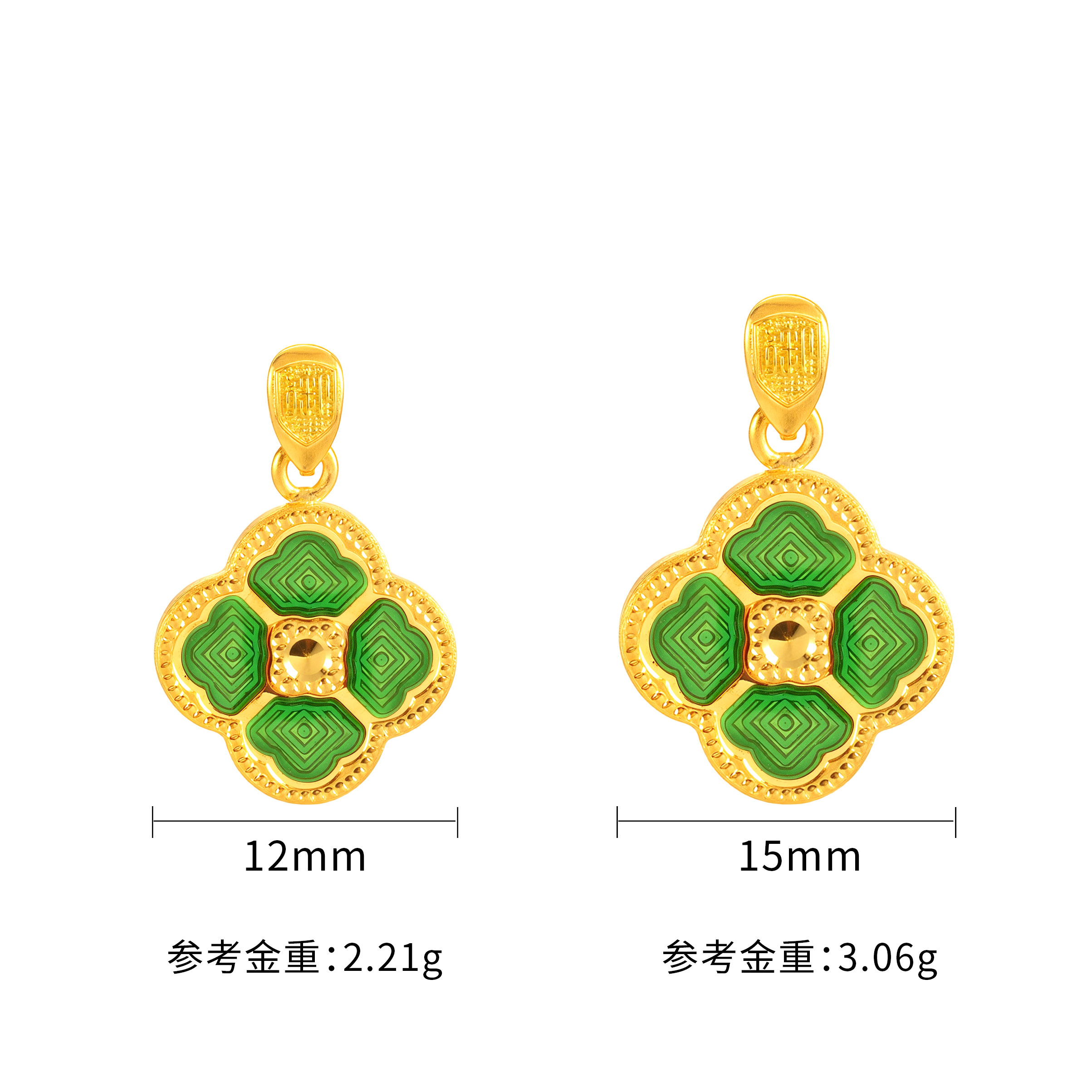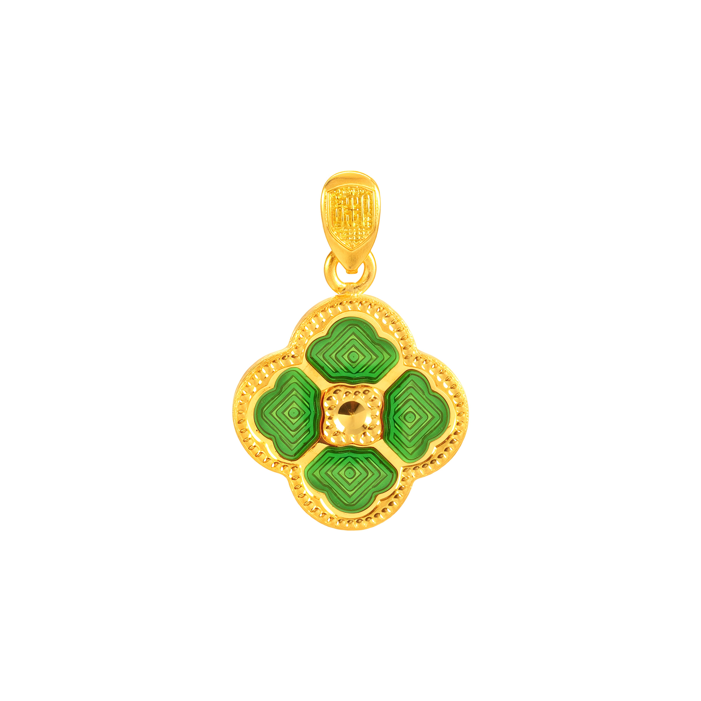 素金四叶草【朱砂红】CNC吊坠