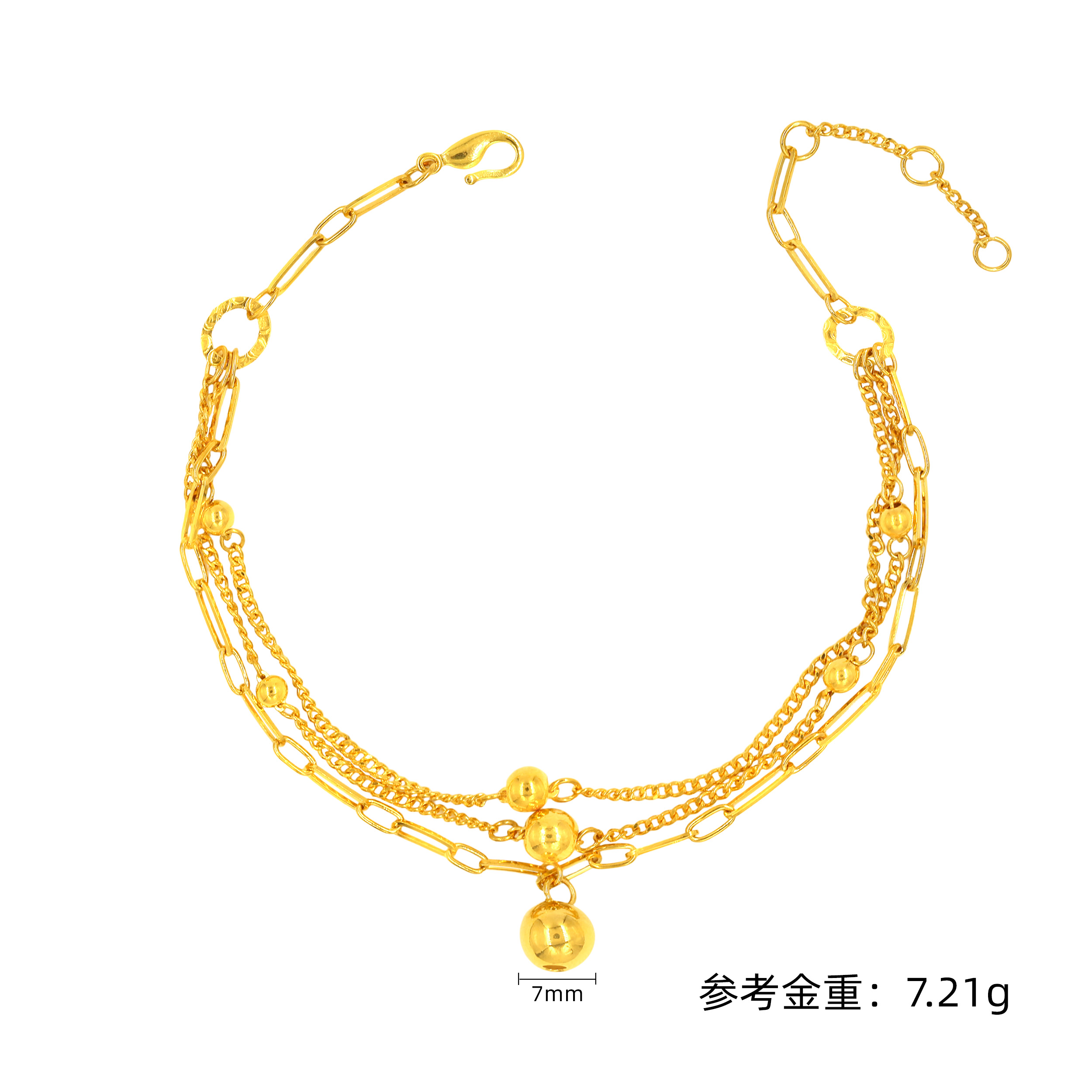 OXY轻雅金素金叠带双层链条时尚拼款手链