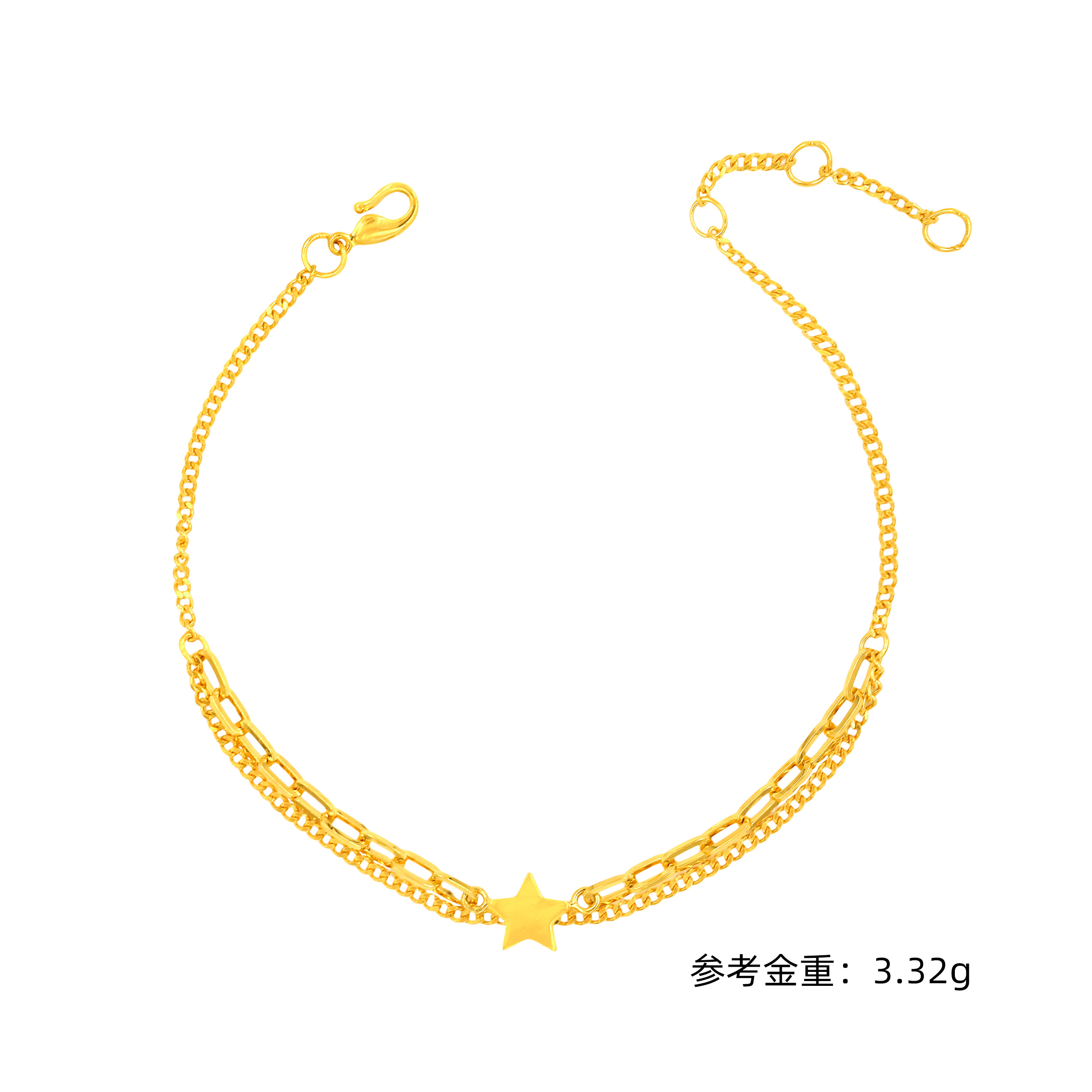 OXY轻雅金素金叠带双层链条时尚拼款手链