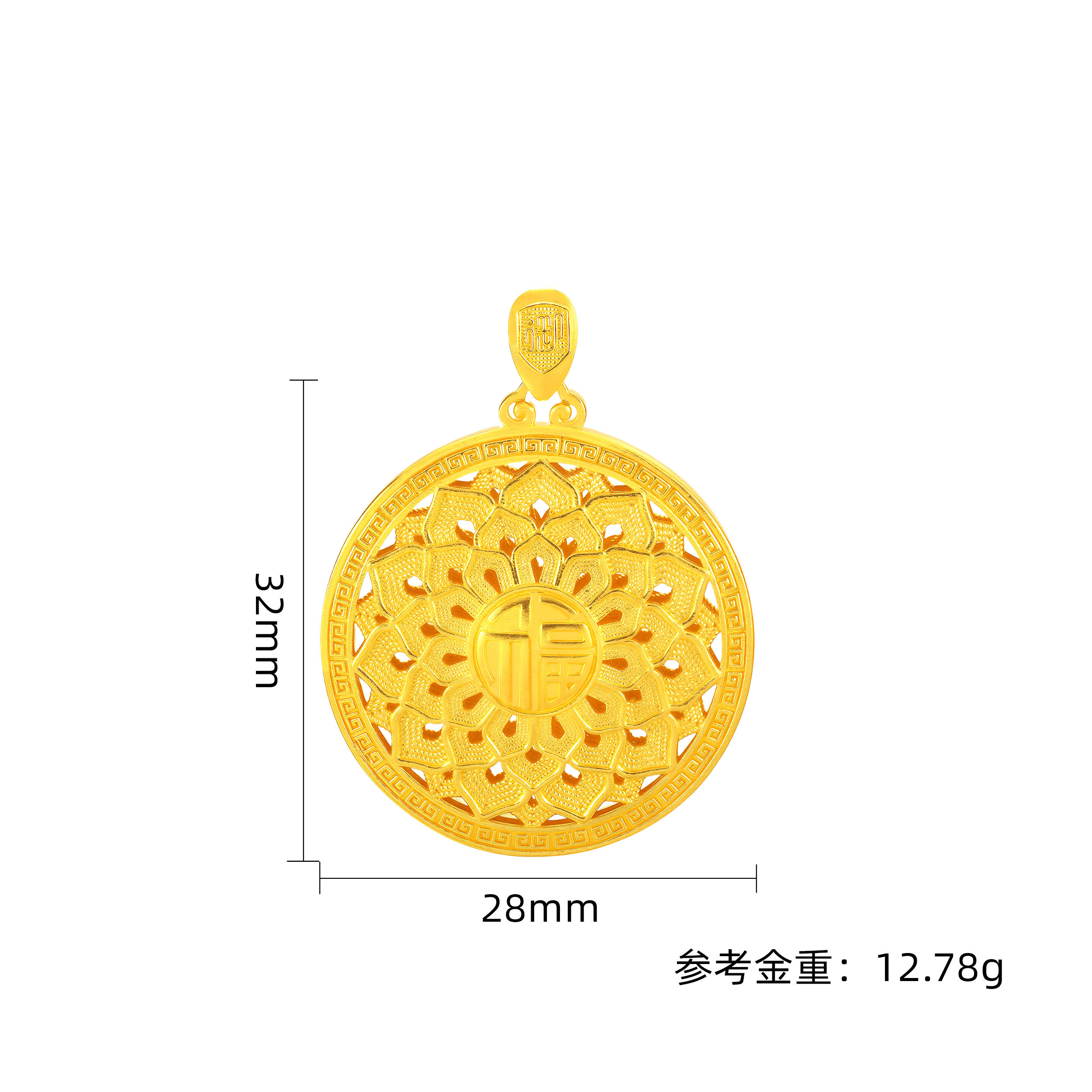 古法福来运转罗盘碎碎金时尚吊坠