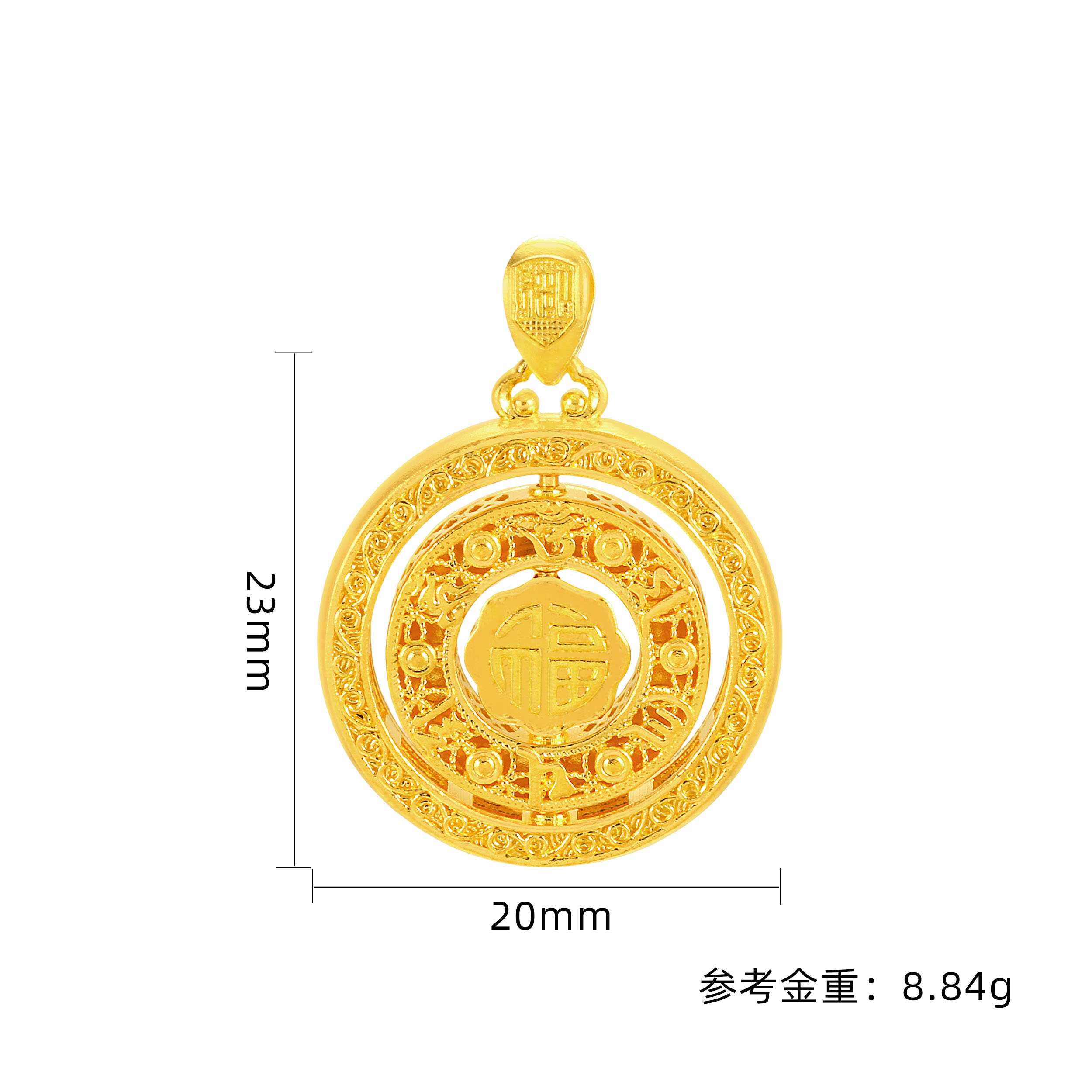 古法福来运转罗盘碎碎金时尚吊坠