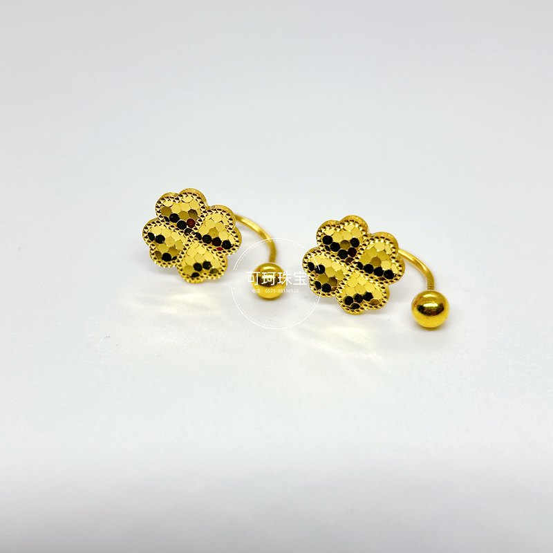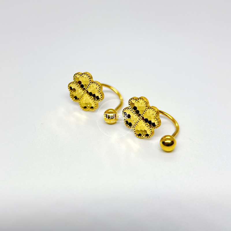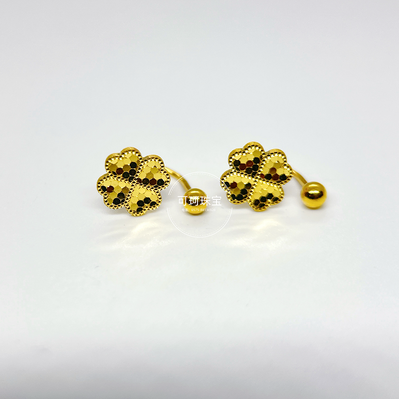 | 这款足金U型耳环采用四叶草造型,
