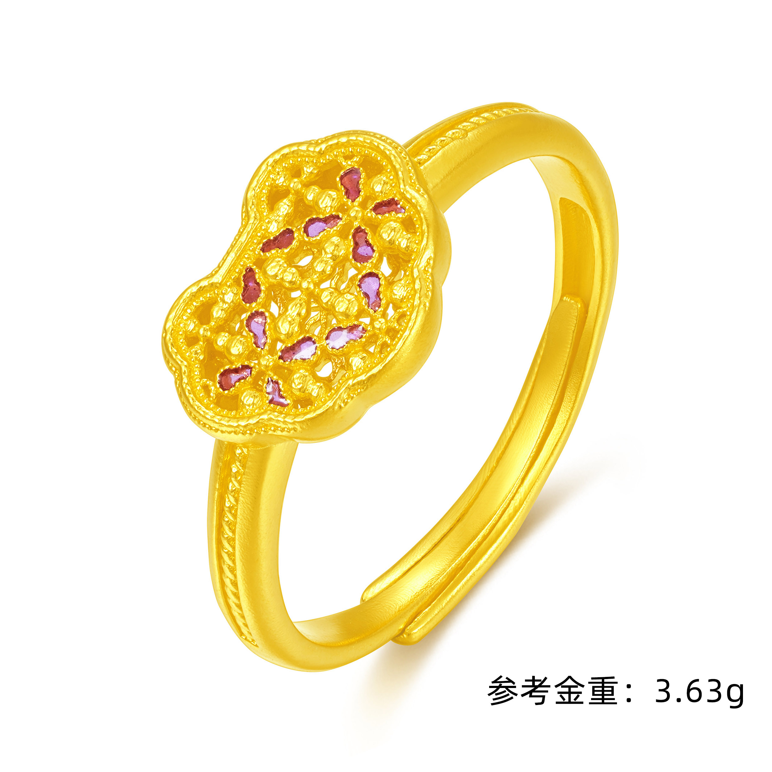 天官赐福古法空窗鎏彩福运层叠时尚开口戒