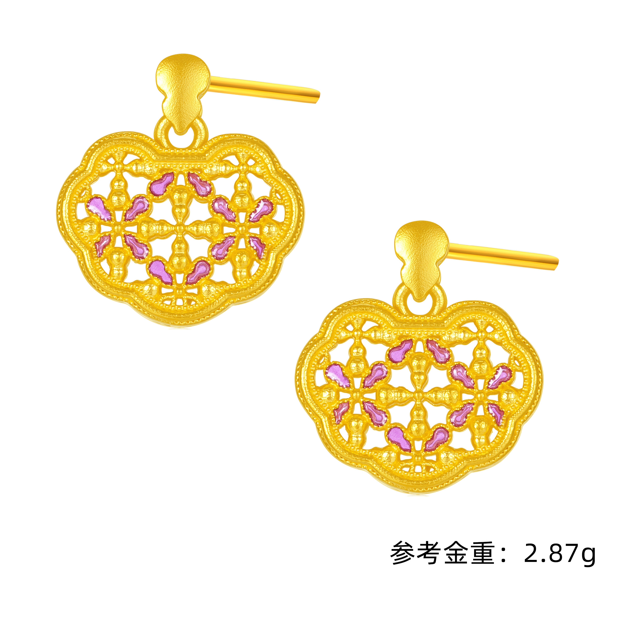 天官赐福古法空窗鎏彩福运层叠时尚耳钉 |