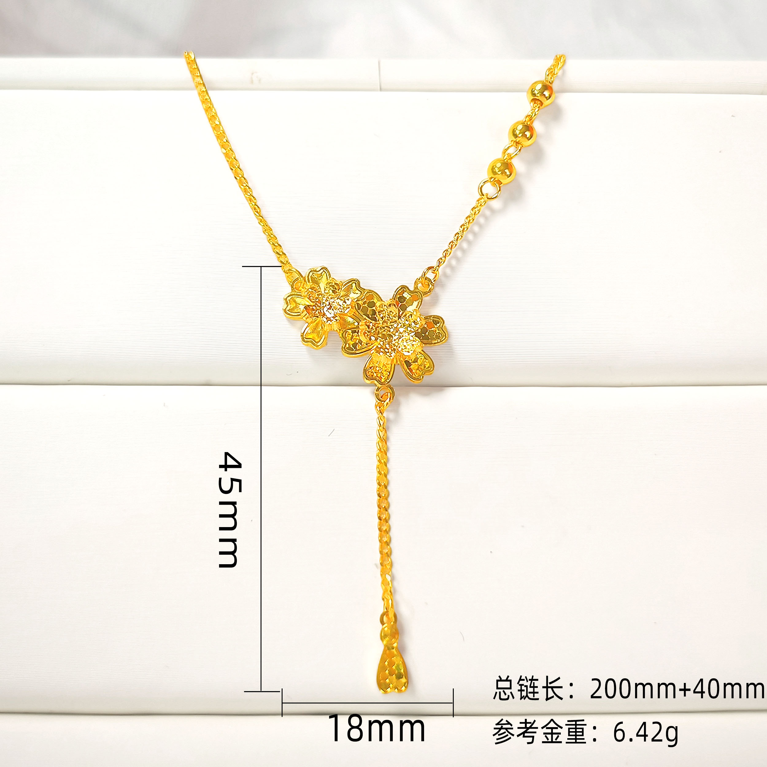 素金花朵水滴流苏碎碎金小清新套链 |