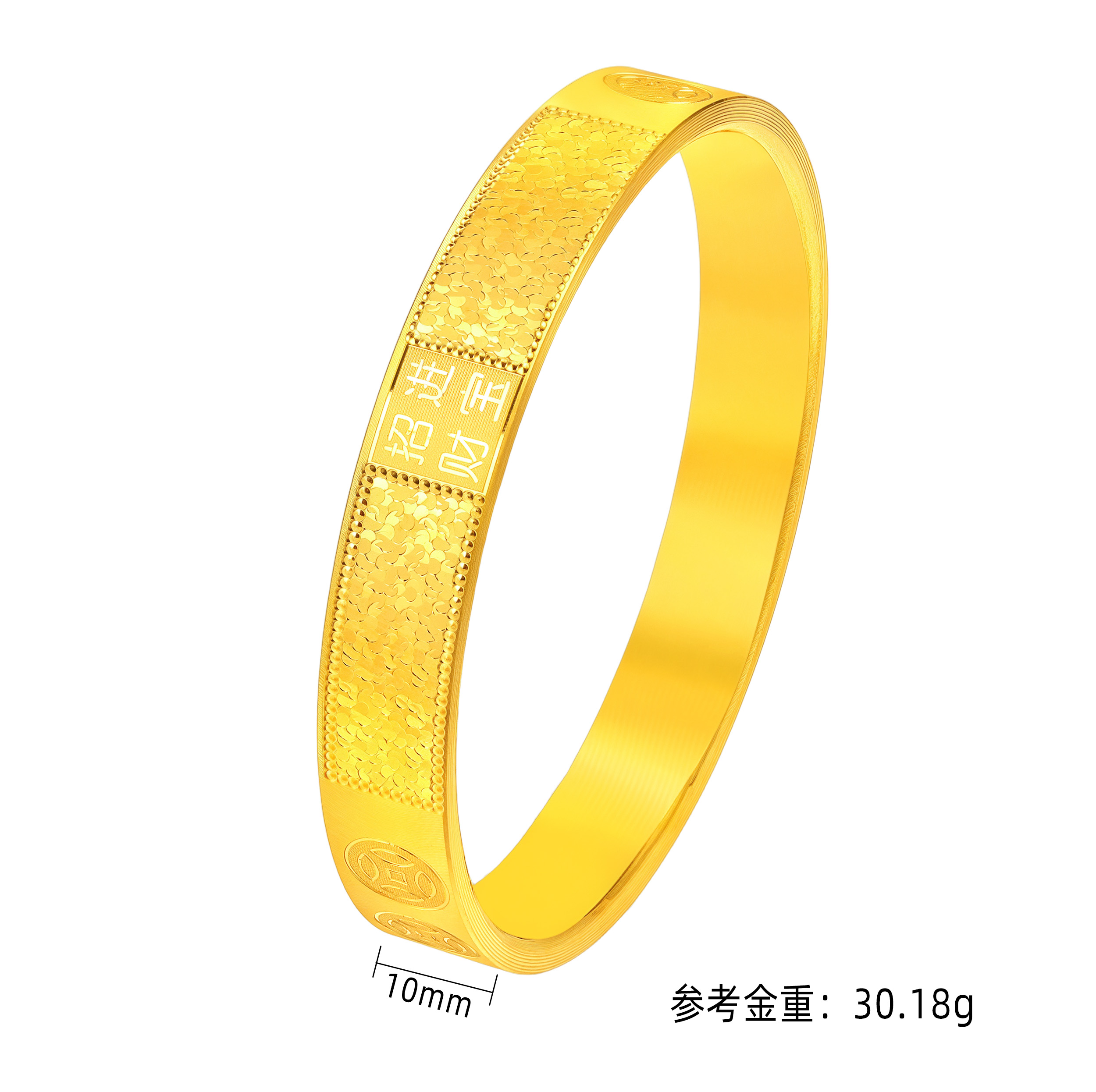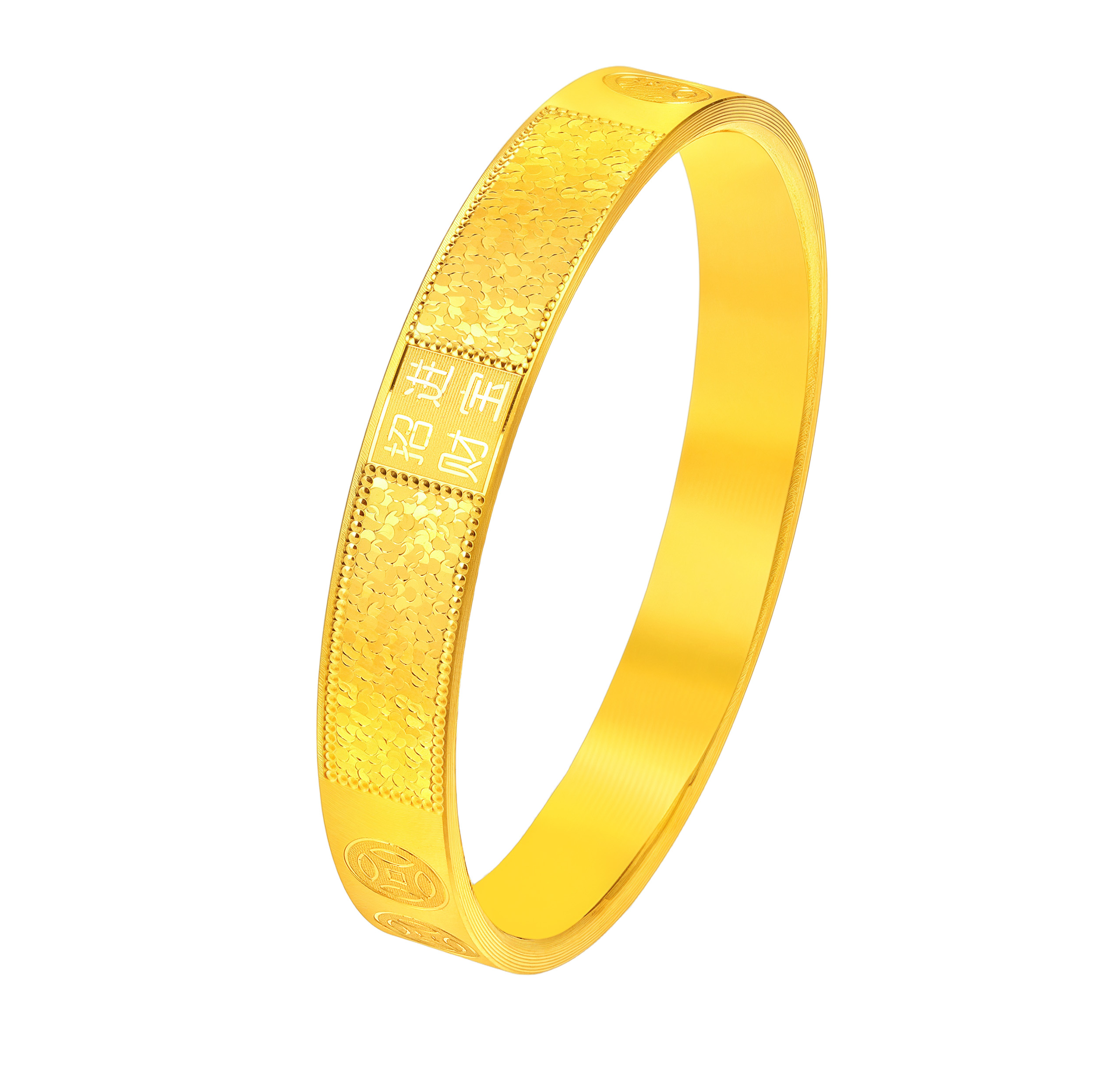 素金招财进宝碎碎金时尚平面固口镯 |