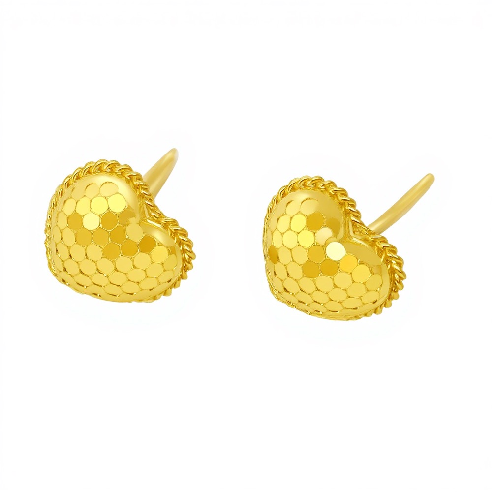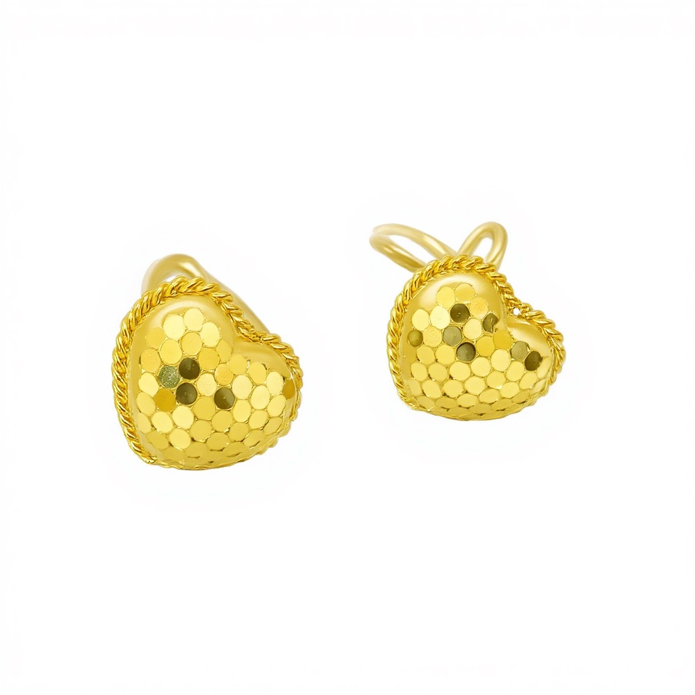 | 这款2.88克足金耳环,心形设计搭配锤纹亮面✨