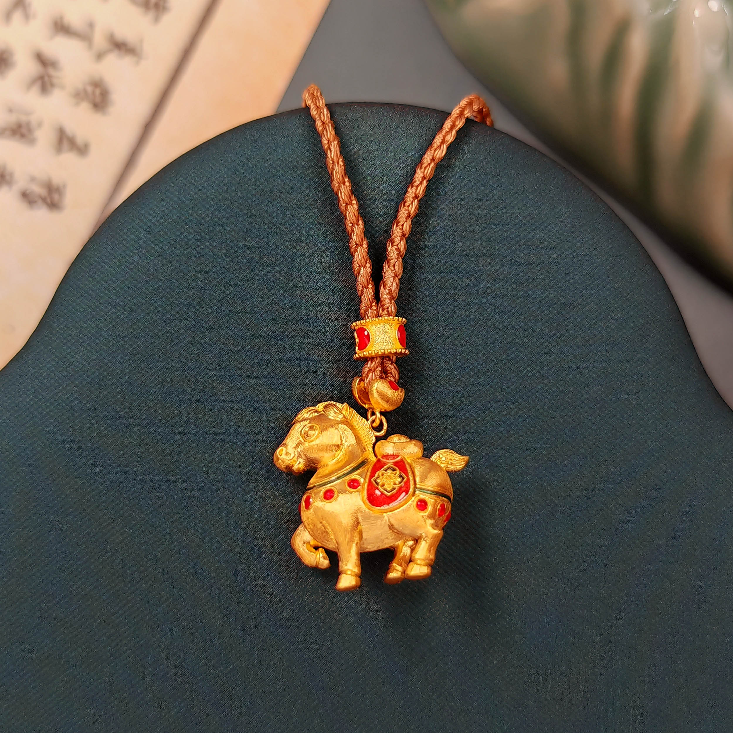 古法马上有钱生肖吊坠