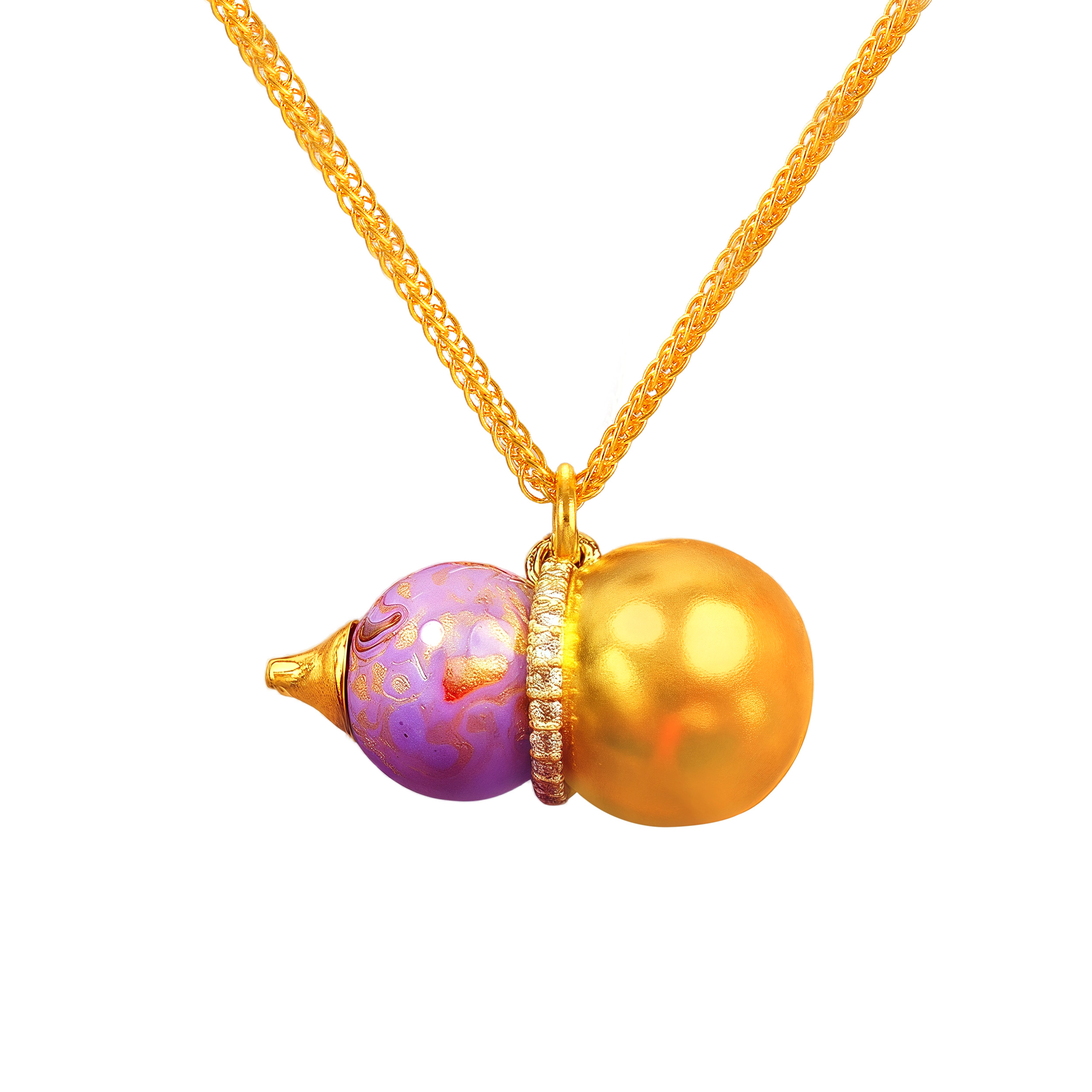 古法非遗大漆葫芦紫气东来镶莫桑石精品套链