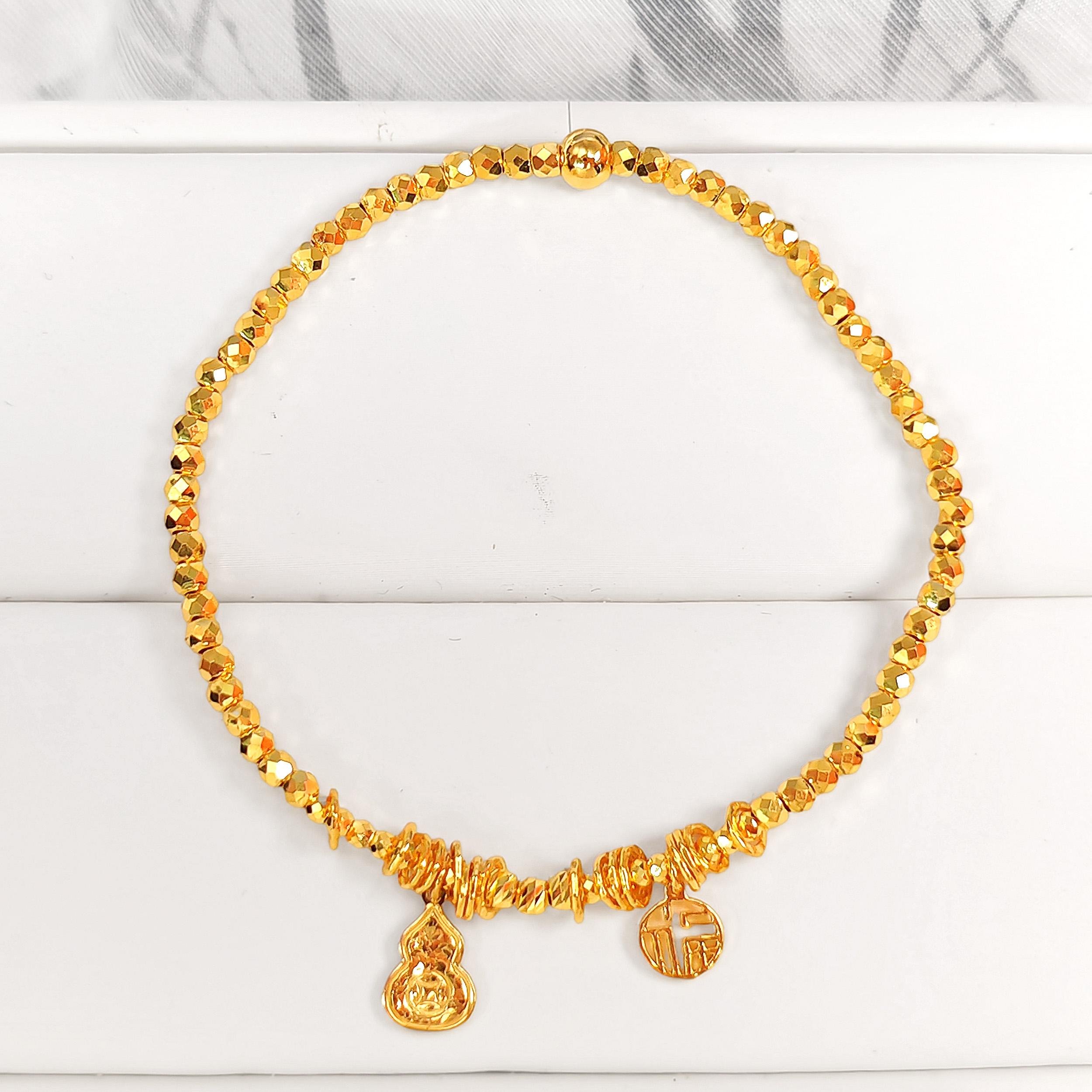 素金葫芦碎碎金福牌爆闪精品手串 |