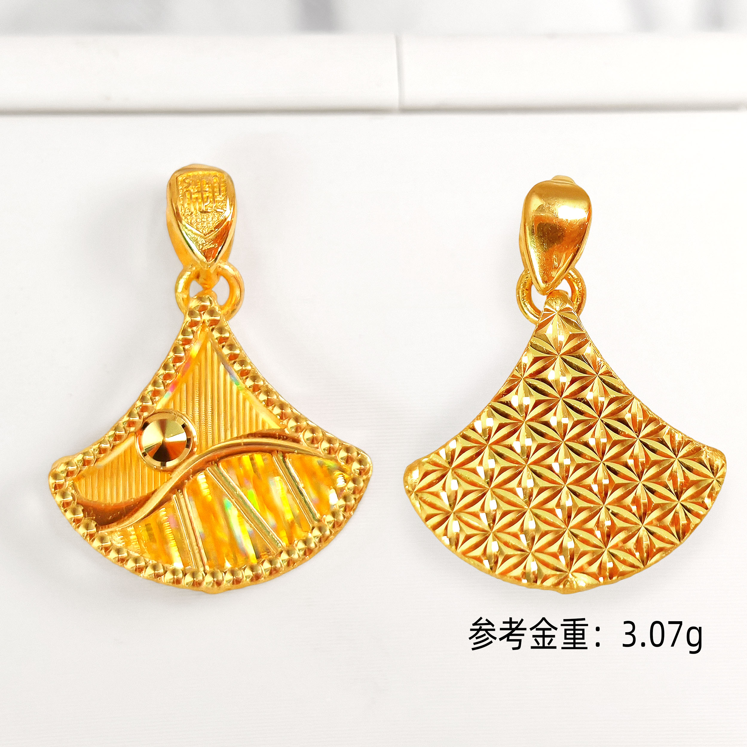 素金扇坠七彩CNC吊坠 |