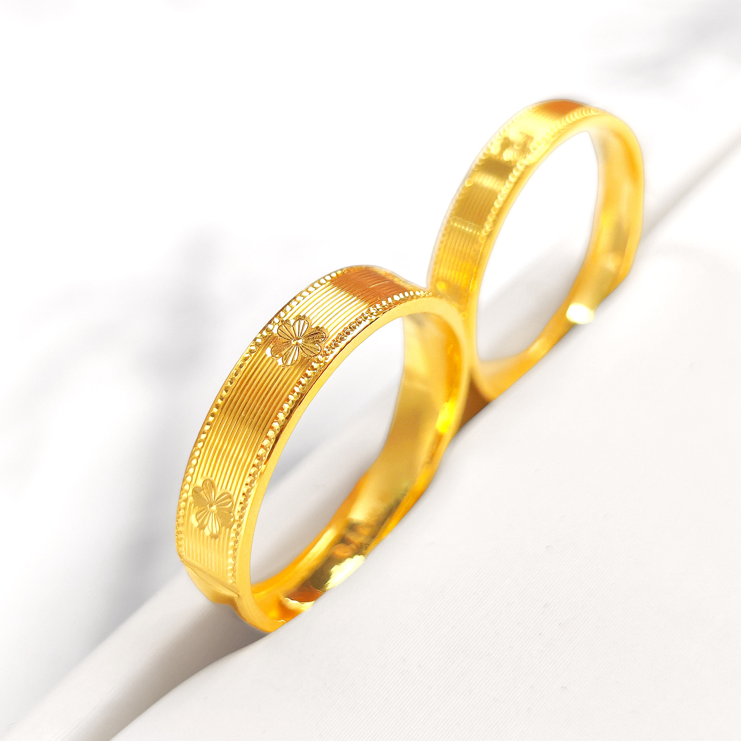 素金仿钻拉丝情侣对戒 |